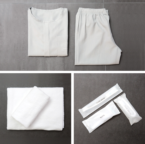 Capsule hotels provide a place to sleep in a private room. Each guest room is a wooden space where you can relax and drift off to sleep. The arrangement is that everyone keeps communal areas such as the shower rooms, toilets and the laundry clean and comfortable so that they can be shared in a friendly manner. The floors and walls are flat surfaces, so they are easy to clean quickly by yourself. The free space on the 1st floor has tables for your computers and chairs as well as one big table useful when chatting with others.